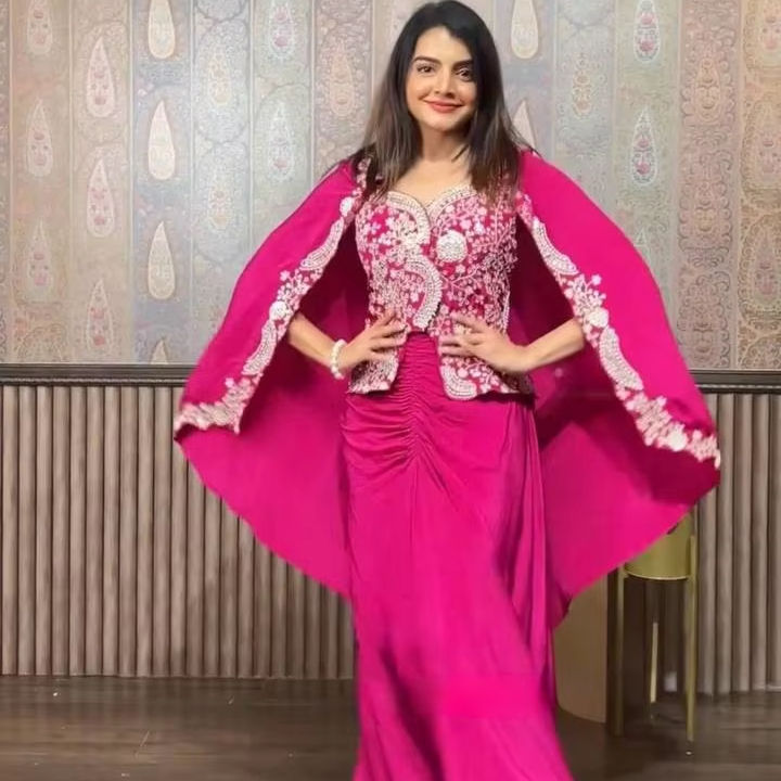 গ্রাউনের বিবরণ:-সুইচ সিল্ক কাপড়ের উপর সিকুয়েন্স লেস এবং পিংটক এর কাজ করা থাকবে, লং ৩৬ ইঞ্চি। বডি ফ্রি সাইজ( ৪৪ পর্যন্ত হবে)